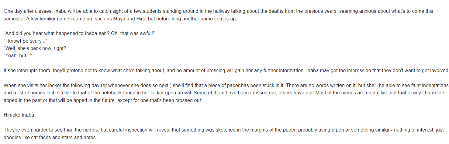 If you have made any major changes to the setting, please let a mod know. If your character has contributed to any changes in setting that would be noticed by other characters, please reply to this comment to let us know. Please note that minor changes are reset at the end of every school day.